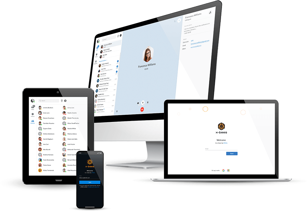 La solution de vidéoconférence professionnelle et facile à utiliser pour les ventes et le service client depuis n’importe quel endroit. Utilisez votre solution de travail sur votre smartphone, ordinateur portable ou tablette, ou dans une salle de conférence grâce au hardware propriétaire.